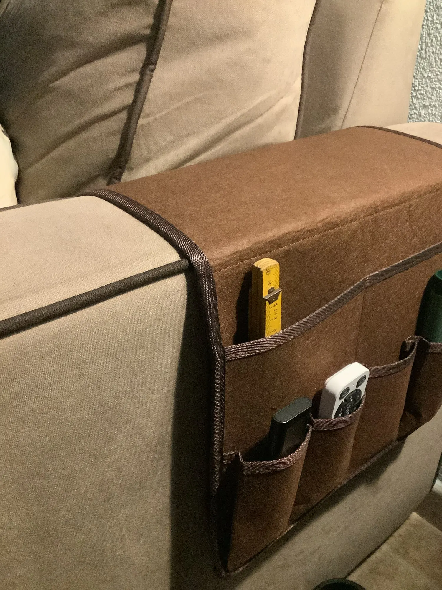 - Multiple storage compartments/pockets — often includes several pockets (large and small) for remotes, phones, tablets, magazines, glasses, snacks, etc